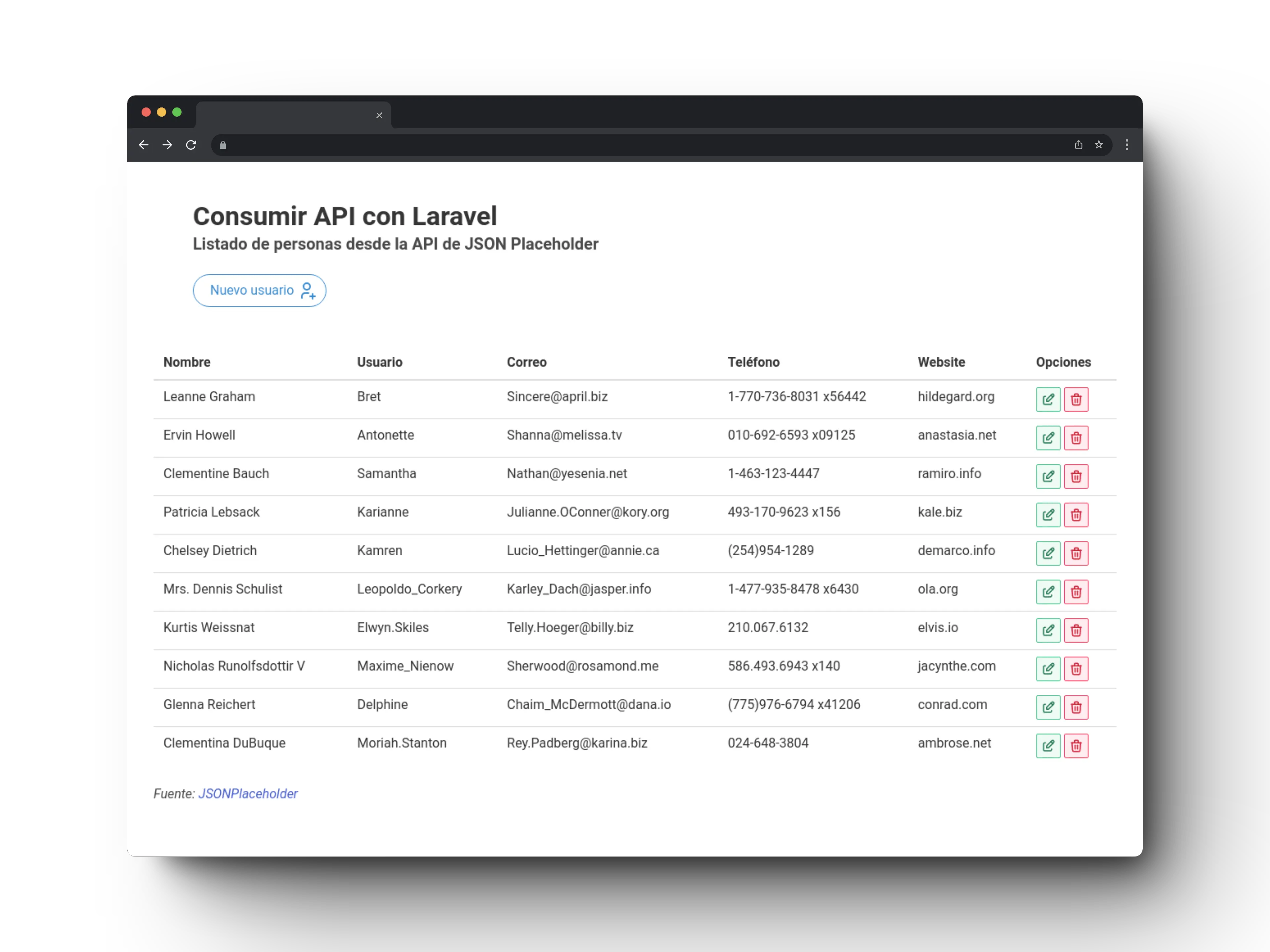 Creado a partir de una prueba técnica que consiste en consumir una API, utilizando el cliente HTTP que viene integrado en Laravel. Se usaron las siguientes tecnologias: